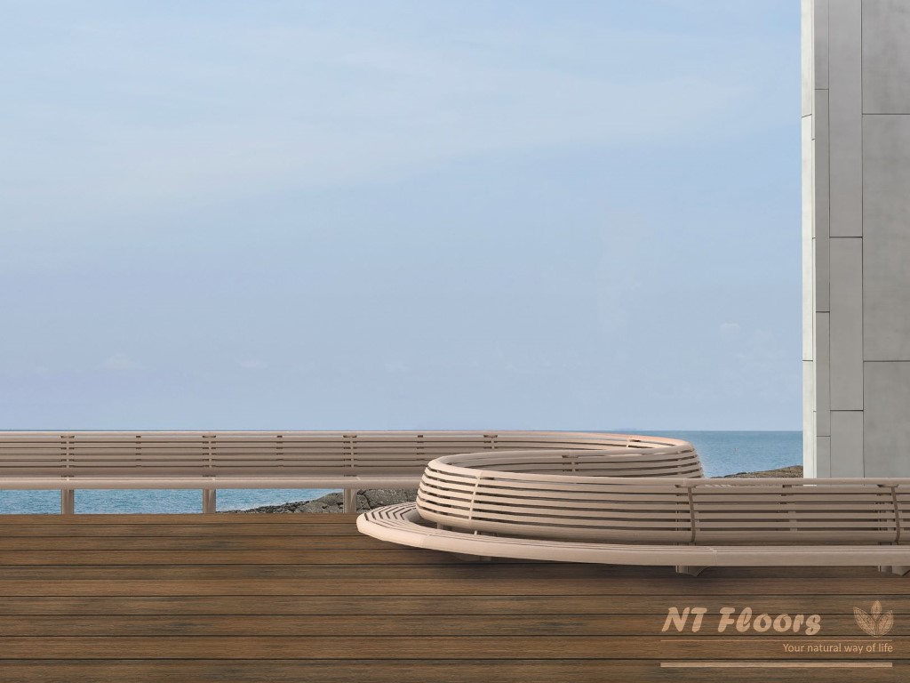 Die WPC Terrassendiele Thermoeiche hat infolge ihrer Materialkomposition ausgezeichnete Eigenschaften. Erstens sind die hohe Beständigkeit und Langlebigkeit im Außenbereich zu nennen. Zweitens sind NT Floors Outdoor Dielen riss- und splitterfrei. Eine Eigenschaft, die für alle Barfußläufer von größter Wichtigkeit ist! Darüber hinaus spielt der ökologische Aspekt ein große Rolle. Der Materialmix macht unsere NT Floors WPC Terrassendielen pflegeleicht. Aufwändiges nachölen entfällt! Außerdem vergrauen die Dielen nicht und ihre Farbstabilität ist hervorragend. Umwelt- und Witterungseinflüsse sowie die Nutzung lässt die Dielen altern. Trotzdem bleibt der farbliche Grundcharakter erhalten. Zusammengefasst hat jeder Nutzer an einer Terrasse aus NT Floors Outdoor Dielen lange Freude.