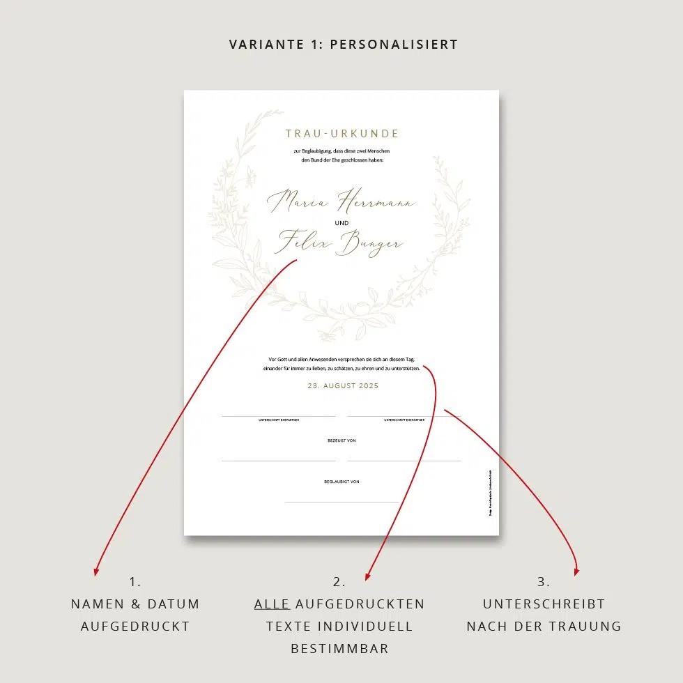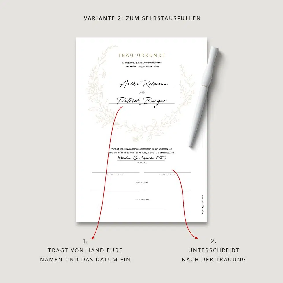 Bezeugt von: Hier unterschreiben eure Trauzeugen. Auch mehrere Trauzeugen können problemlos unterschreiben.